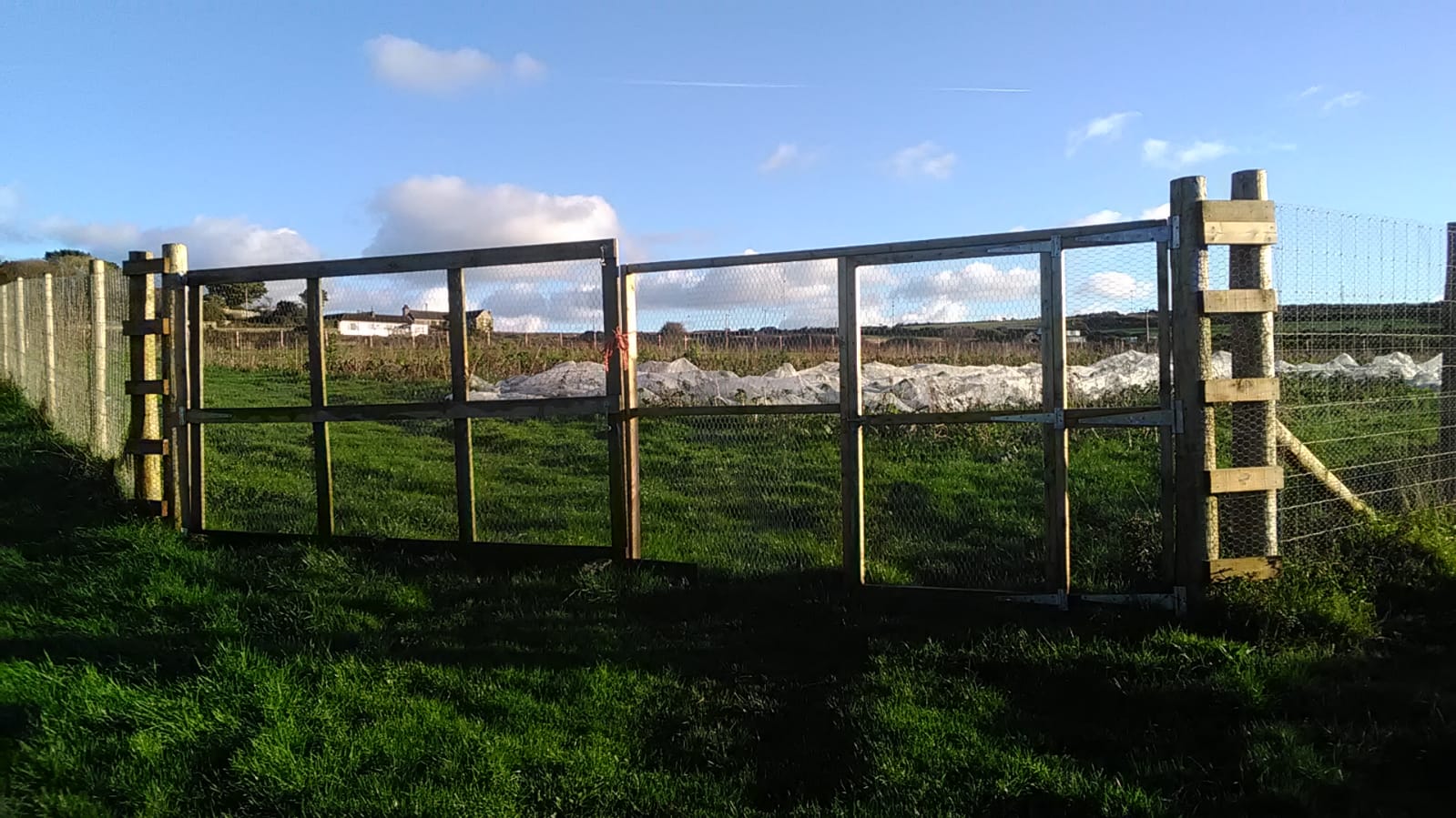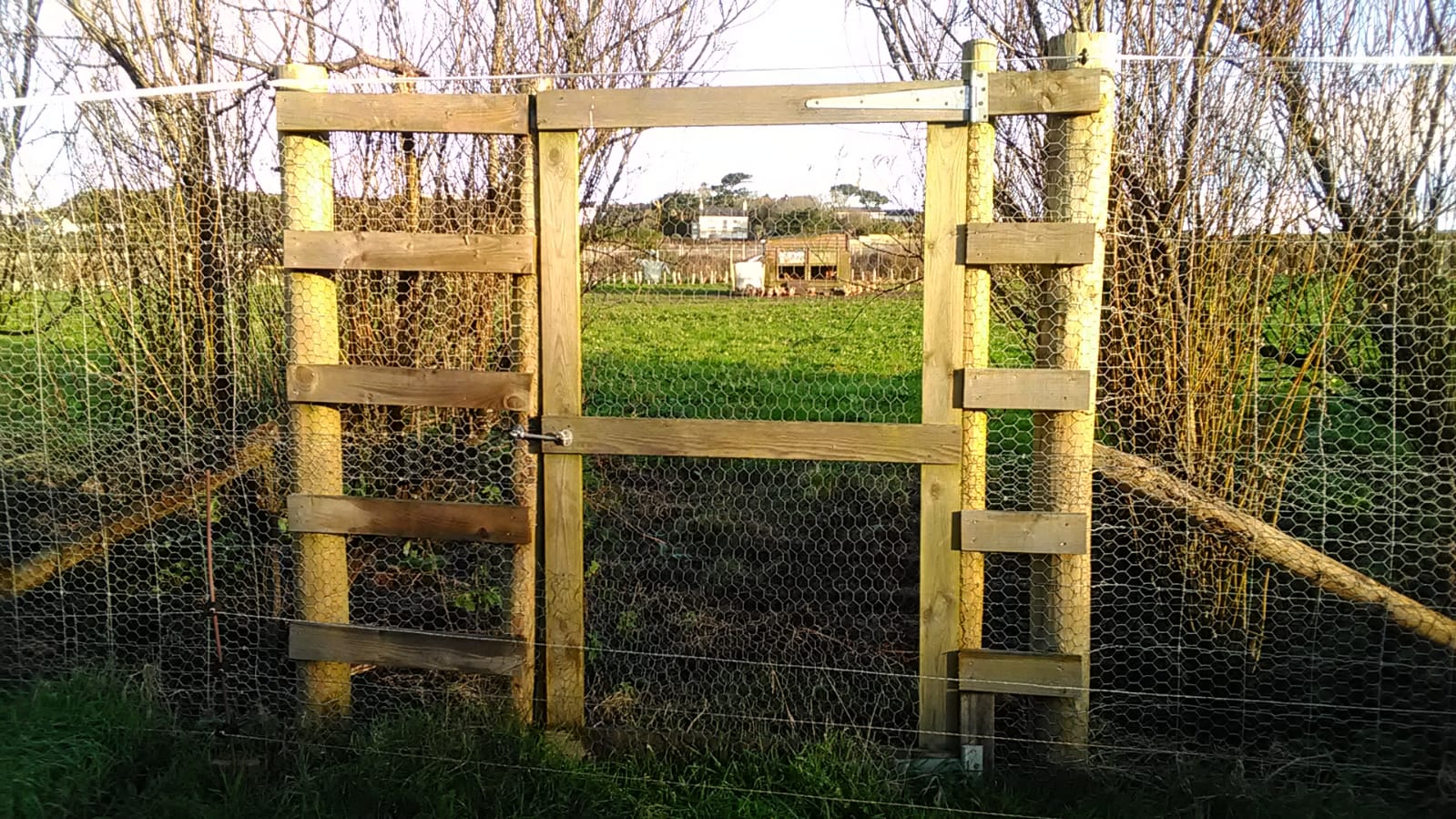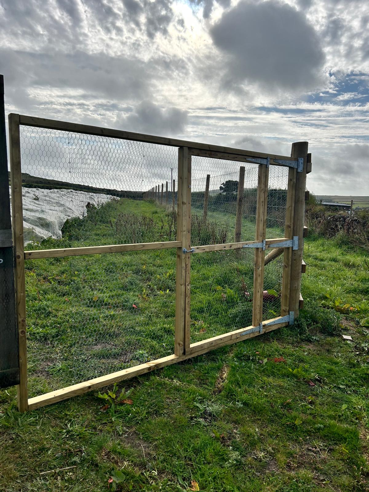 In March 2024, we re-fenced two of our fields (Clegg Field and Meeting Field). View our farm map here. These two fields are on a 4-year rotation of chickens and crops. This sustains soil nutrients, fertilises the land, serves as free weeding and pest control, and gives our chickens lots of roots and insects to feed on.